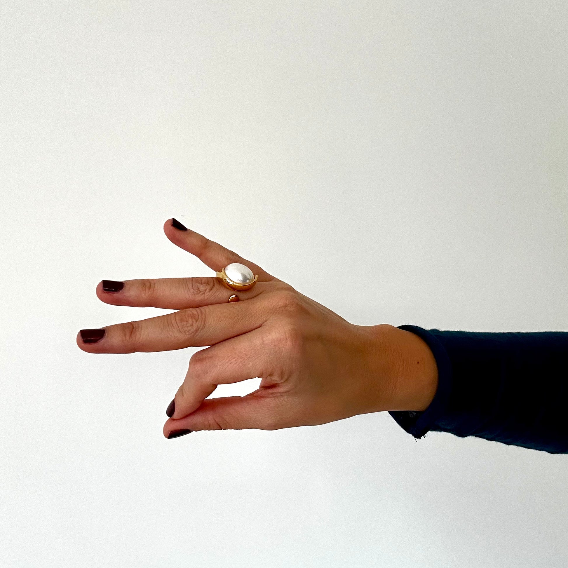 Add a touch of elegance to your look with this stunning SPIRAL PEARL ring. Featuring a wavy design and beautiful pearl, it adds that perfect finishing touch to any outfit. Perfect for both special occasions and everyday wear.